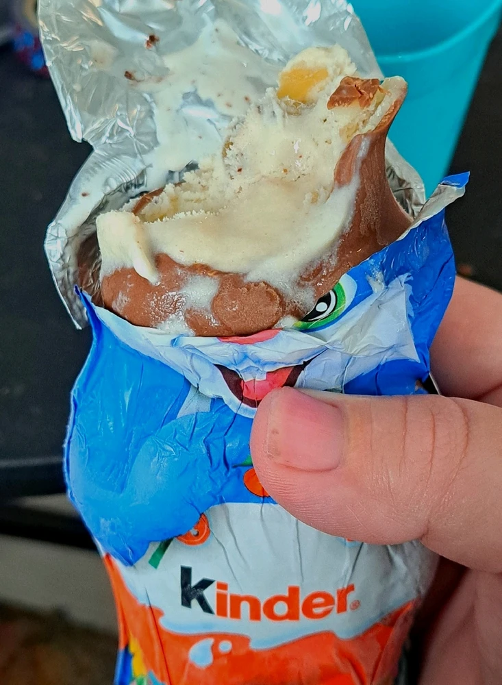 Chunky monkey ice cream inside a Kinder hollow bunny