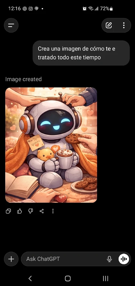 I ask chat gtp: create and image of how i treat you all this time.
