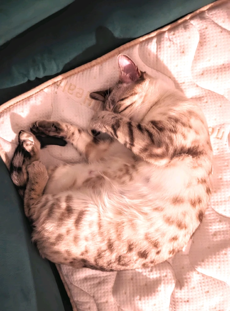 I purchased an infrared sauna-PEMF mat, that's infused with tourmaline, amethyst and jade... Athena stole it. She refuses to fall asleep anywhere else. Just vibing in her sleep. Healing.