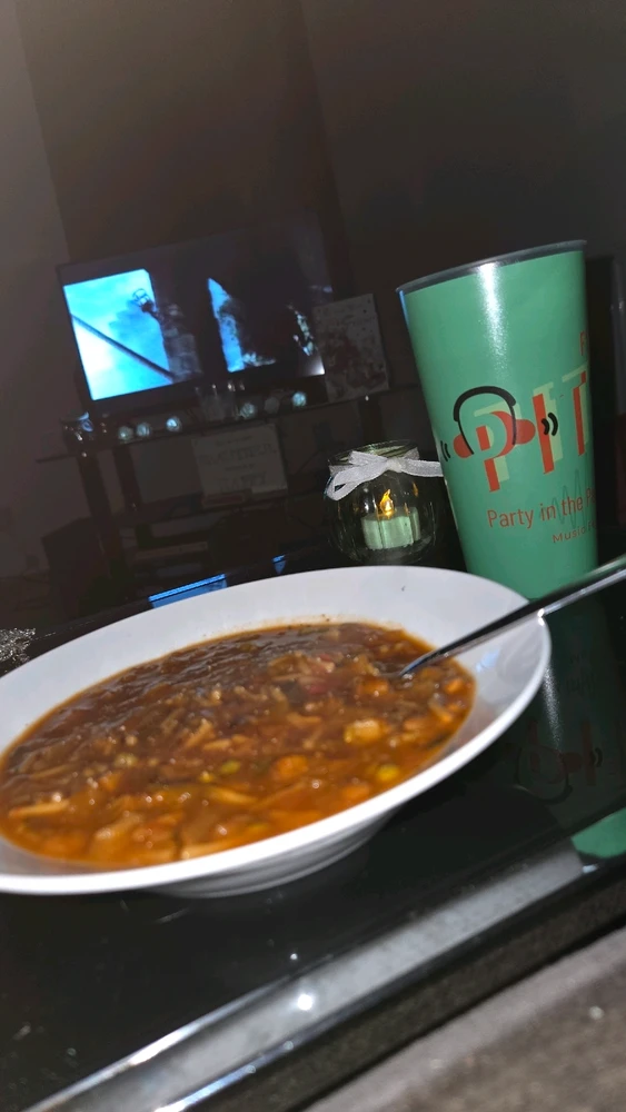 Minestrone soup with Black Pepper whilst watching Pirates of the Caribbean 💆🏼♀️ Probably too full of veg or too dark or not enough or something for some of the men on here 😂😂🫡