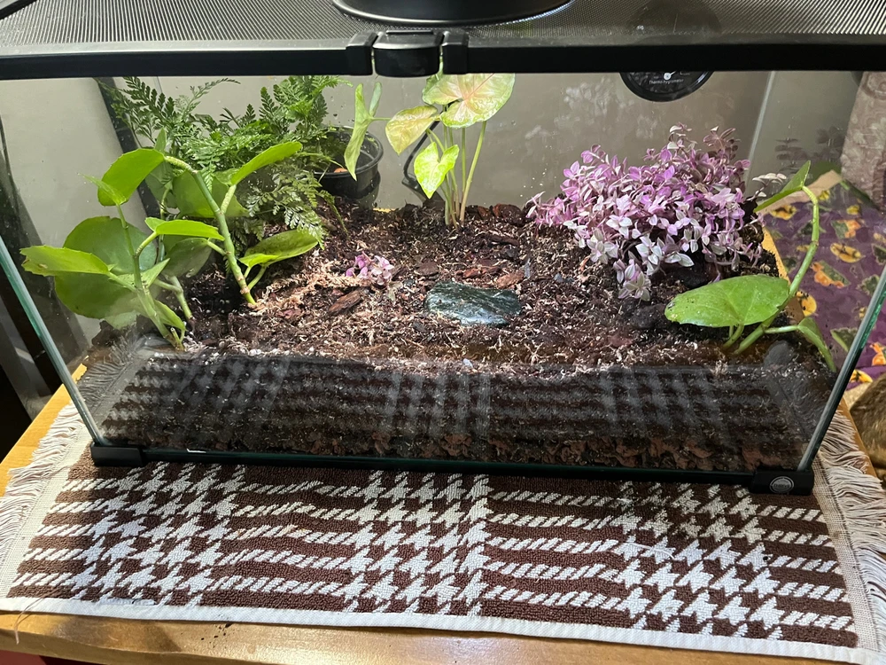 Finally got around to scraping up some moss for my leopard geckos Vivarium. It's about 2 years old and the final image is what it looked like for the summer ☀️ It houses a Leo, Ground Skink, Anole and a frog in a 50 gal wide tank.