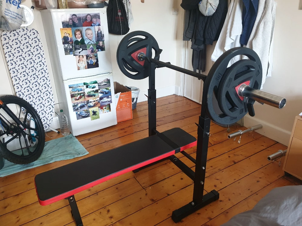 How many of you own your own weights and what do you have? I've got an 11.7kg olympic barbell, 7.4kg olympic dumbells and over 100kg of olympic weights, plus a fold away weight bench