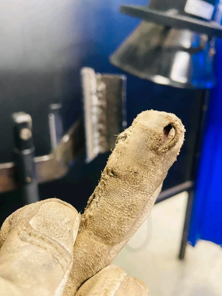 Still will need a liner at the cuff and possily modifying the last lame of the gauntlet to protect the fingertips better Also working on getting a better suited glove , the welding gloves are temporary